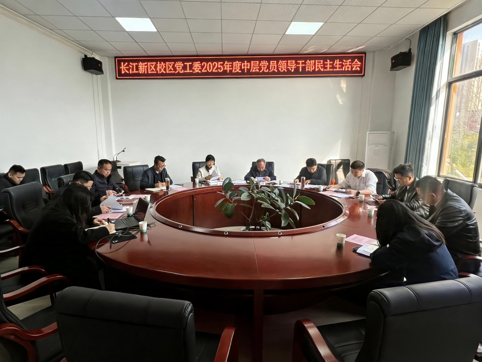 3月12日上午,长江新区校区党工委在问津楼A205会议室召开2025年度中层党员领导干部民主生活会。校党委书记谢红星,校指导组组长、组织部常务副部长何凤桃,指导组成员、组织部科长何斯婕到会指导。会议由党工委书记章天金主持,党工委领导班子全体成员参加会议。